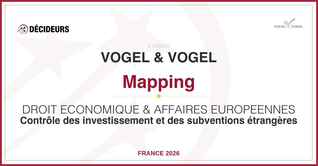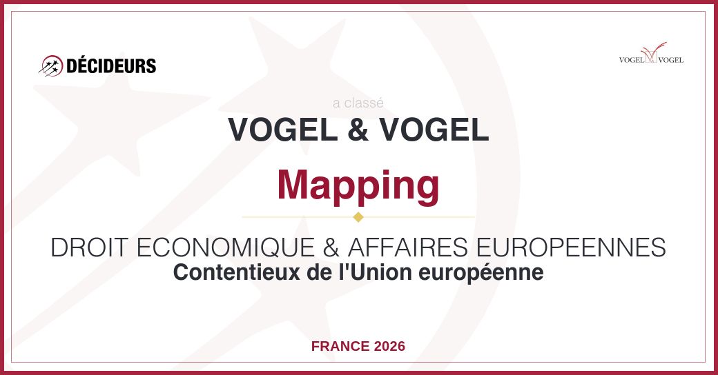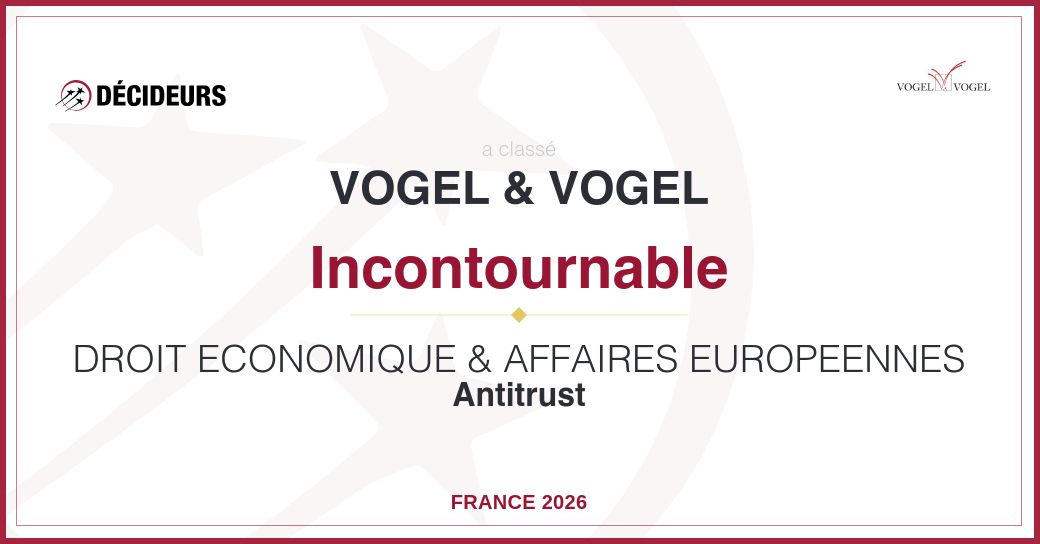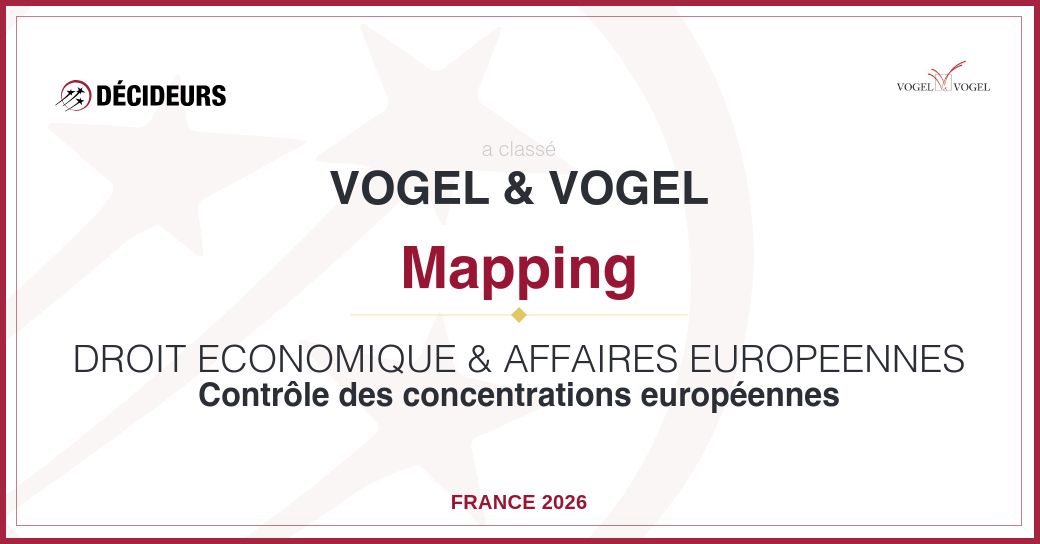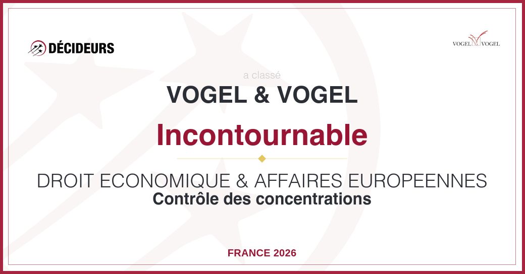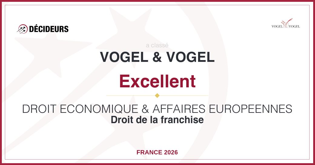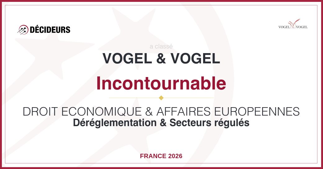 Cette année encore, le cabinet Vogel & Vogel est reconnu pour l’excellence de sa pratique ultraspécialisée en droit économique. Cabinet technophile, Vogel & Vogel a lancé en 2025 Livv by Vogel, une plateforme du droit des affaires dédiée aux juristes d’entreprise.