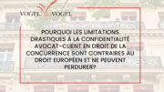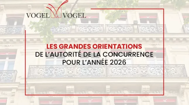 actualités articles fermer #LECONSEILDUMOIS DÉCISIONS DÉCRYPTAGE DISTINCTIONS PUBLICATIONS Toutes les rubriques Rubriques Toutes les rubriques #LECONSEILDUMOIS DÉCISIONS DÉCRYPTAGE DISTINCTIONS PUBLICATIONS Posté le 29/01/2026Rubriques DÉCRYPTAGE Les grandes orientations de l’Autorité de la concurrence pour l’a.. Dans la continuité de sa feuille de route 2025-2026, l’Autorité de la concurrence a présenté les grandes orientations qui structureront son action en 2026.Celles-ci s’articulent autour de trois priorités majeures : la grande distribution, la modernisation du contrôle des concentrations et l’amélioration du fonctionnement concurrentiel dans les Outre-mer. Cet article propose une analyse de ces… Lire Posté le 20/01/2026Rubriques DÉCRYPTAGE Droit de rétractation : ajout d’une nouvelle fonctionnalité de ré.. Un clic pour s’engager, un clic pour se rétracter : l’ordonnance 2026-2 impose aux professionnels… Lire Posté le 08/01/2026Rubriques DÉCRYPTAGE Plaidoyer contre la rétroactivité des sanctions quasi-pénales en dr.. La non-rétroactivité des sanctions pénales ou quasi-pénales plus sévères est consubstantielle de l’Etat de droit.… Lire Posté le 24/11/2025Rubriques DÉCRYPTAGE Pourquoi le Policy Brief de la Commission opposé à la confidentialit.. Un Policy Brief de la Commission européenne a été publié sur le Legal Privilege le… Lire Posté le 29/10/2025Rubriques DÉCRYPTAGE Secret avocat–client : la Chambre commerciale réaffirme l’unité .. La Chambre commerciale de la Cour de cassation vient de rendre un arrêt de principe… Lire tous les articles Atelier Vogel & Vogel x AFJE • Réforme du régime de la responsabilité du fait des produits défectueux : présentation de la nouvelle directive. Posté le 24/09/2025Rubriques DÉCRYPTAGE Lire Pourquoi les limitations drastiques à la confidentialité avocat-client en droit de la concurrence sont contraires au droit européen et ne peuvent perdurer? Posté le 23/09/2025Rubriques DÉCRYPTAGE Lire Le secret professionnel de l’avocat et son opposabilité aux autorités administratives Posté le 28/08/2025Rubriques DÉCRYPTAGE Lire Rapport annuel 2024 de l’Autorité de la concurrence : même si l’année est historique, des marges de progression existent Posté le 31/07/2025Rubriques DÉCRYPTAGE Lire Charger plus