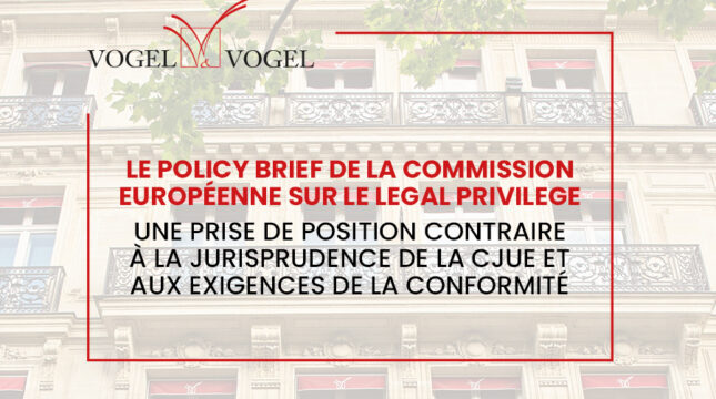 actualités articles fermer #LECONSEILDUMOIS DÉCISIONS DÉCRYPTAGE DISTINCTIONS PUBLICATIONS Toutes les rubriques Rubriques Toutes les rubriques #LECONSEILDUMOIS DÉCISIONS DÉCRYPTAGE DISTINCTIONS PUBLICATIONS Posté le 24/11/2025Rubriques DÉCRYPTAGE Pourquoi le Policy Brief de la Commission opposé à la confidentialit.. Un Policy Brief de la Commission européenne a été publié sur le Legal Privilege le 10 novembre 2025. Il réduit le secret professionnel avocat-client à la portion congrue et refuse d’admettre la confidentialité des avis des juristes d’entreprise. Analyse de ce Policy Brief par Louis et Joseph Vogel démontrant qu’il s’agit d’une prise de position… Lire Posté le 29/10/2025Rubriques DÉCRYPTAGE Secret avocat–client : la Chambre commerciale réaffirme l’unité .. La Chambre commerciale de la Cour de cassation vient de rendre un arrêt de principe… Lire Posté le 24/09/2025Rubriques DÉCRYPTAGE Atelier Vogel & Vogel x AFJE • Réforme du régime de la respon.. Atelier animé par Me Charles-Siegfried Fahrner et Me Sylvain Corvol, experts du cabinet Vogel &… Lire Posté le 23/09/2025Rubriques DÉCRYPTAGE Pourquoi les limitations drastiques à la confidentialité avocat-clie.. La Chambre criminelle maintient une lecture très restrictive de la confidentialité avocat-client, limitée aux correspondances… Lire Posté le 28/08/2025Rubriques DÉCRYPTAGE Le secret professionnel de l’avocat et son opposabilité aux autorit.. Maître Joseph Vogel décortique, dans l'émission LEX INSIDE - BSMART 4CHANGE animée par Arnaud Dumourier,… Lire tous les articles Rapport annuel 2024 de l’Autorité de la concurrence : même si l’année est historique, des marges de progression existent Posté le 31/07/2025Rubriques DÉCRYPTAGE Lire Comment anticiper l’augmentation des amendes pour retards de paiement, pouvant passer à 1% du chiffre d’affaires mondial de l’entreprise ? Posté le 22/07/2025Rubriques DÉCRYPTAGE Lire La Chambre criminelle maintient sa vision très restrictive des droits de la défense dans le cadre des enquêtes de concurrence Posté le 17/07/2025Rubriques DÉCRYPTAGE Lire Démantèlement de Casino : Auchan consolide ses positions Posté le 17/07/2025Rubriques DÉCRYPTAGE Lire Charger plus