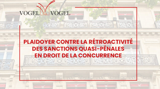 actualités articles fermer #LECONSEILDUMOIS DÉCISIONS DÉCRYPTAGE DISTINCTIONS PUBLICATIONS Toutes les rubriques Rubriques Toutes les rubriques #LECONSEILDUMOIS DÉCISIONS DÉCRYPTAGE DISTINCTIONS PUBLICATIONS Posté le 08/01/2026Rubriques DÉCRYPTAGE Plaidoyer contre la rétroactivité des sanctions quasi-pénales en dr.. La non-rétroactivité des sanctions pénales ou quasi-pénales plus sévères est consubstantielle de l’Etat de droit. L’Autorité de la concurrence ne s’estime cependant pas liée par ce principe fondamental s’agissant de son communiqué sanctions du 30 juillet 2021. Or, à notre sens, la non-rétroactivité du communiqué sanctions de l’Autorité de la concurrence de 2021 s’impose Vous… Lire Posté le 24/11/2025Rubriques DÉCRYPTAGE Pourquoi le Policy Brief de la Commission opposé à la confidentialit.. Un Policy Brief de la Commission européenne a été publié sur le Legal Privilege le… Lire Posté le 29/10/2025Rubriques DÉCRYPTAGE Secret avocat–client : la Chambre commerciale réaffirme l’unité .. La Chambre commerciale de la Cour de cassation vient de rendre un arrêt de principe… Lire Posté le 24/09/2025Rubriques DÉCRYPTAGE Atelier Vogel & Vogel x AFJE • Réforme du régime de la respon.. Atelier animé par Me Charles-Siegfried Fahrner et Me Sylvain Corvol, experts du cabinet Vogel &… Lire Posté le 23/09/2025Rubriques DÉCRYPTAGE Pourquoi les limitations drastiques à la confidentialité avocat-clie.. La Chambre criminelle maintient une lecture très restrictive de la confidentialité avocat-client, limitée aux correspondances… Lire tous les articles Le secret professionnel de l’avocat et son opposabilité aux autorités administratives Posté le 28/08/2025Rubriques DÉCRYPTAGE Lire Rapport annuel 2024 de l’Autorité de la concurrence : même si l’année est historique, des marges de progression existent Posté le 31/07/2025Rubriques DÉCRYPTAGE Lire Comment anticiper l’augmentation des amendes pour retards de paiement, pouvant passer à 1% du chiffre d’affaires mondial de l’entreprise ? Posté le 22/07/2025Rubriques DÉCRYPTAGE Lire La Chambre criminelle maintient sa vision très restrictive des droits de la défense dans le cadre des enquêtes de concurrence Posté le 17/07/2025Rubriques DÉCRYPTAGE Lire Charger plus